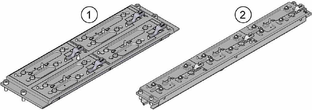 装SIPLACE TX1/TX2 V2的吸嘴交换器的底座订货号为:03147925(两行,每行可安装两个吸嘴交换器),SIPLACE TX2i V2的吸嘴交换器的底座订货号为:03129201(1行,每行可安装三个吸嘴交换器)如图所示: